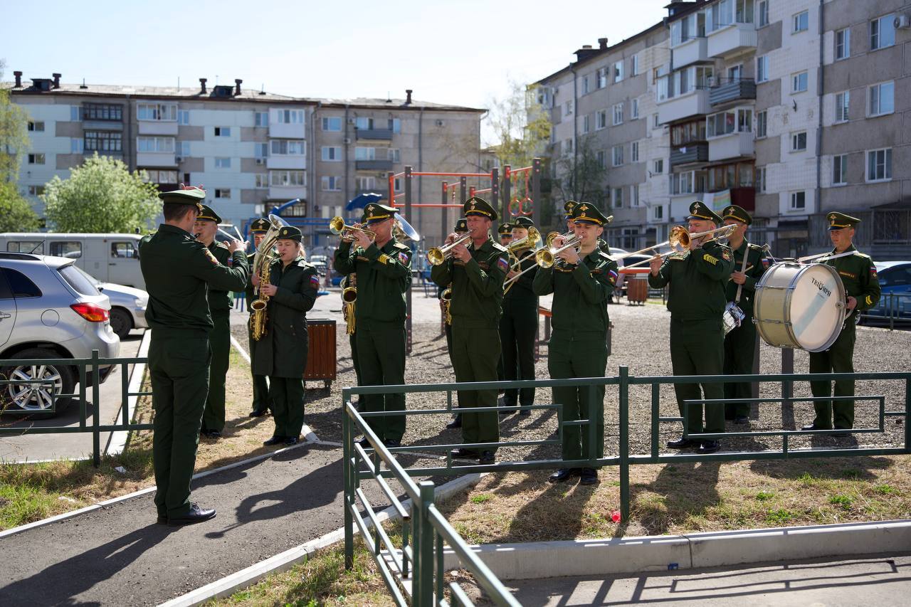 БИРОБИДЖАН, 8 мая, «Город на Бире» - Также свои поздравления адресовал и военный оркестр. Они подготовили любимые песни военных лет.
