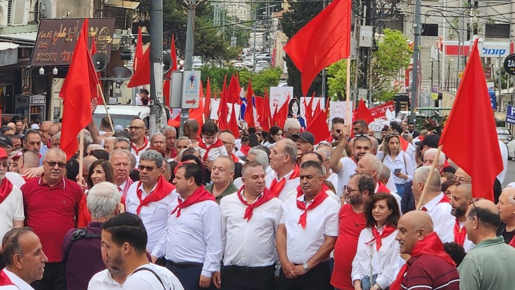 БИРОБИДЖАН, 1 МАЯ, «НАБАТ». — Несмотря на угрозы и полицейские провокации, имевшие место накануне 1 мая, активисты Коммунистической партии Израиля (МАКИ) и ассоциированного с компартией избирательного блока «ХАДАШ», тысячи евреев и арабов, вместе прошли маршем в знак протеста против преступной резни в секторе Газа, оккупации и этнических чисток на Западном берегу и в Восточном Иерусалиме, против социальной несправедливости, классовой эксплуатации и фашизма, за освобождение заложников на основе принципа «всех на всех», за социальное и национальное равенство, демократию и справедливый мир.