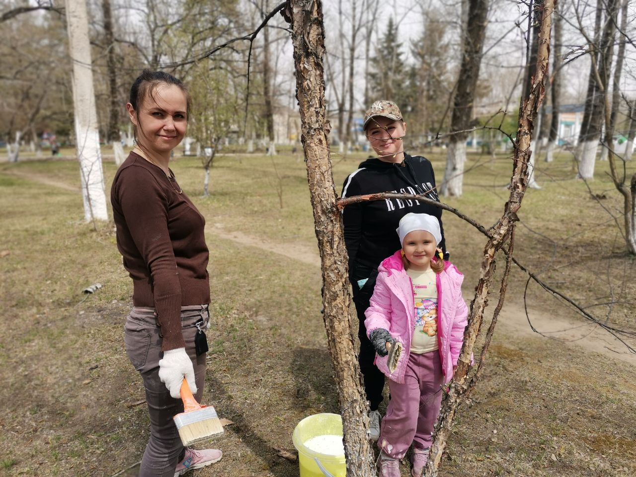 Очередной субботник по побелке деревьев, бордюров и клумб прошел в с. Амурзет ЕАО
