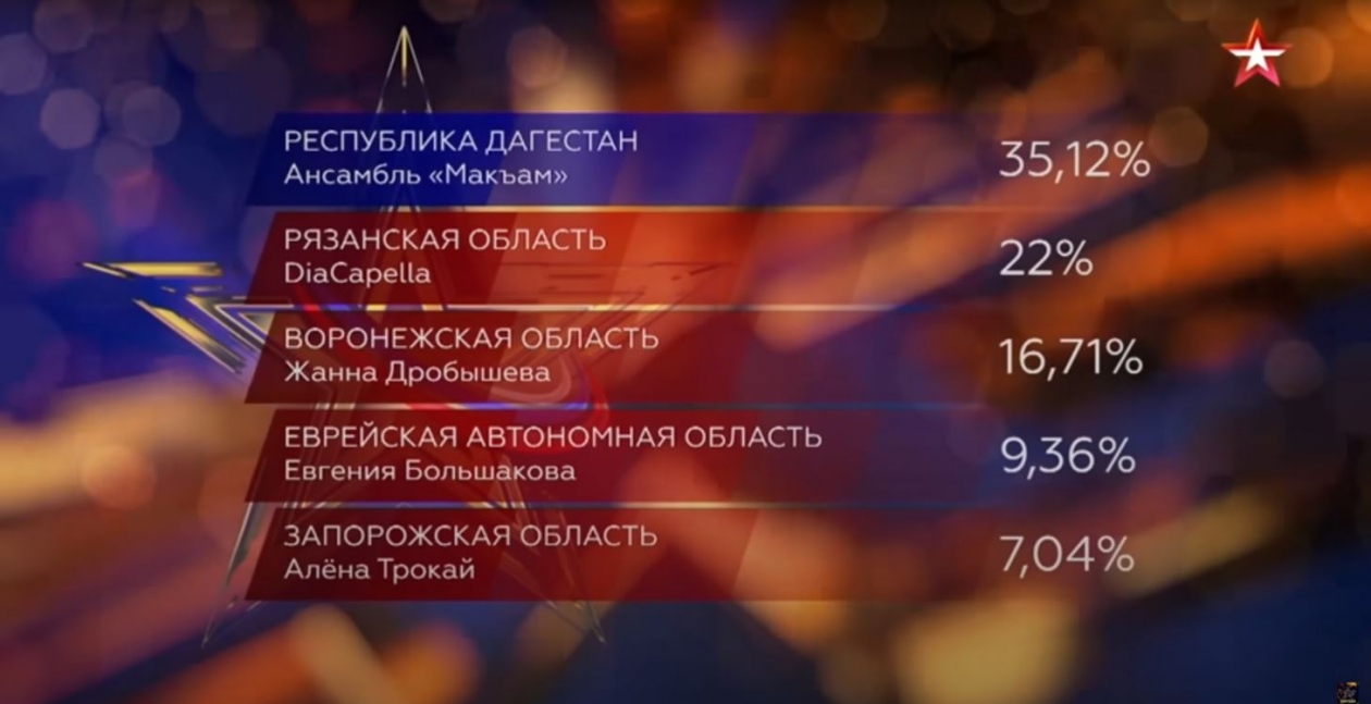 Из 11 вокалистов первого выпуска всероссийского конкурса, одного выбрало жюри, остальные 10 сразились в зрительском голосовании, по результатам которого участница из ЕАО стала четвертой.