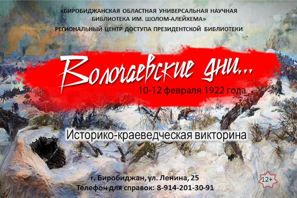 Биробиджанский региональный центр Президентской библиотеки к памятной дате подготовил историко-краеведческую викторину «Волочаевские дни» (12+).
