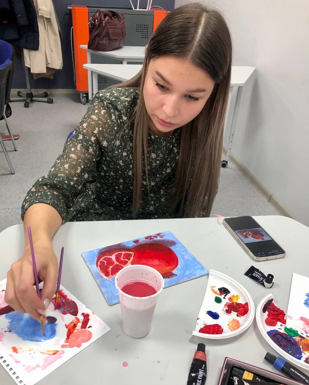 Снять напряжение, тревожность помогла и творческая арт-терапия. Лидия Вознесенская, учитель изобразительного искусства Гимназии №1, организовала для коллег мастер-класс “Мир красок”. Учителя с удовольствием окунулись в волшебный мир рисования, пробовали разные техники и материалы. Они выражали искренние слова признательности Лидии за предоставленную возможность окунуться в творчество.