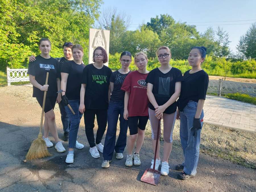 Не первый раз, принимают участие в трудовом десанте и облагородили территорию Абрашина Валерия, Зевунова Варвара, Лановая Анастасия, Ларионова Людмила и Иванова Сайыына, в помощь к ним присоединились наши первокурсницы Абрамочкина Кристина и Нумасова Мария. Девчата дружно и слаженно очистили брусчатку около памятника от сорняков, привели в порядок прилегающие клумбы.