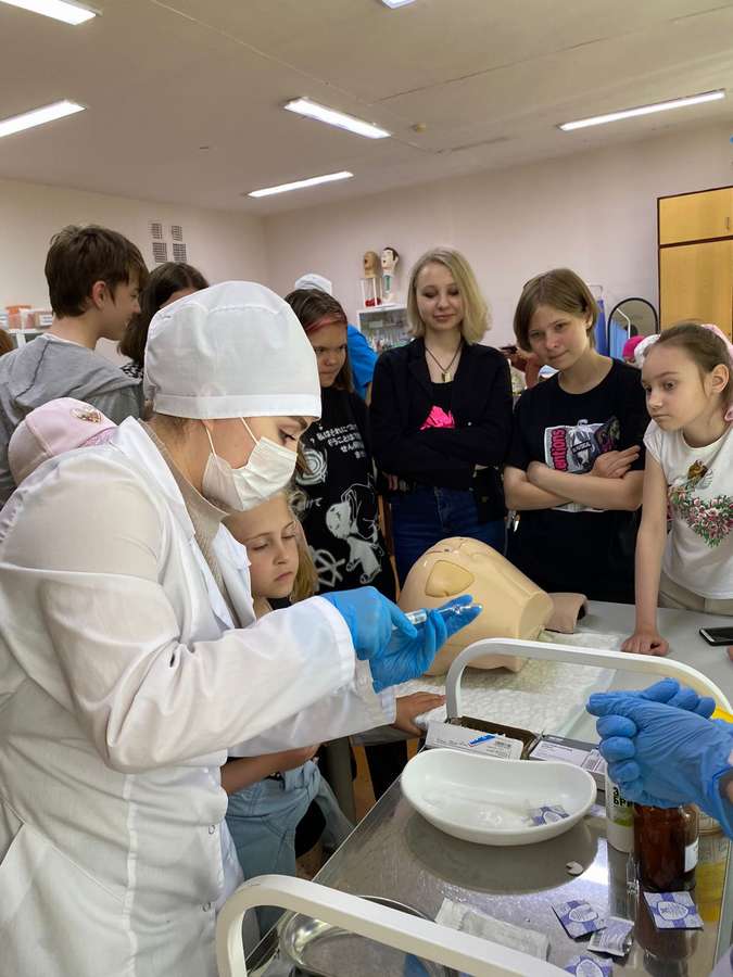 Студенты совместно с преподавателями организовали станции, на которых ребята узнали много интересного и полезного о медицине и медицинской профессии. На станции медицинско-историческая они познакомились с профессиональной одеждой медицинского работника, историческими фактами открытия некоторых медицинских приборов. В анатомическом музее отгадывали загадки и знакомились с экспонатами. Но, а представить себя в качестве будущих медицинских работников, надеть халат, маску, бахилы можно было на станции Практическая.