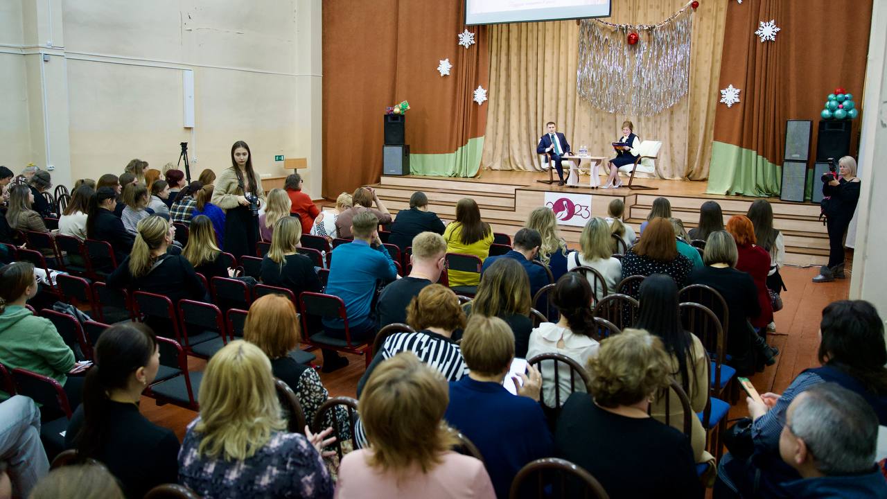 Для педагогов провели урок «Разговоры о важном». В качестве спикера выступил мэр Биробиджана Максим Семёнов. Педагоги и глава города говорили о воспитании подрастающего поколения, семейных ценностях и традициях.