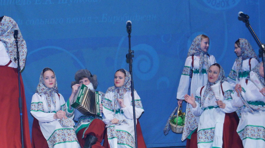 Творческие коллективы города и районов Еврейской автономной области объединила русская песня. С душевной теплотой прозвучали песни, ставшие любимыми и родными для каждого, кто живет в нашей стране. Причем выступили преданные к русской хоровой песне ветераны и молодые исполнители.