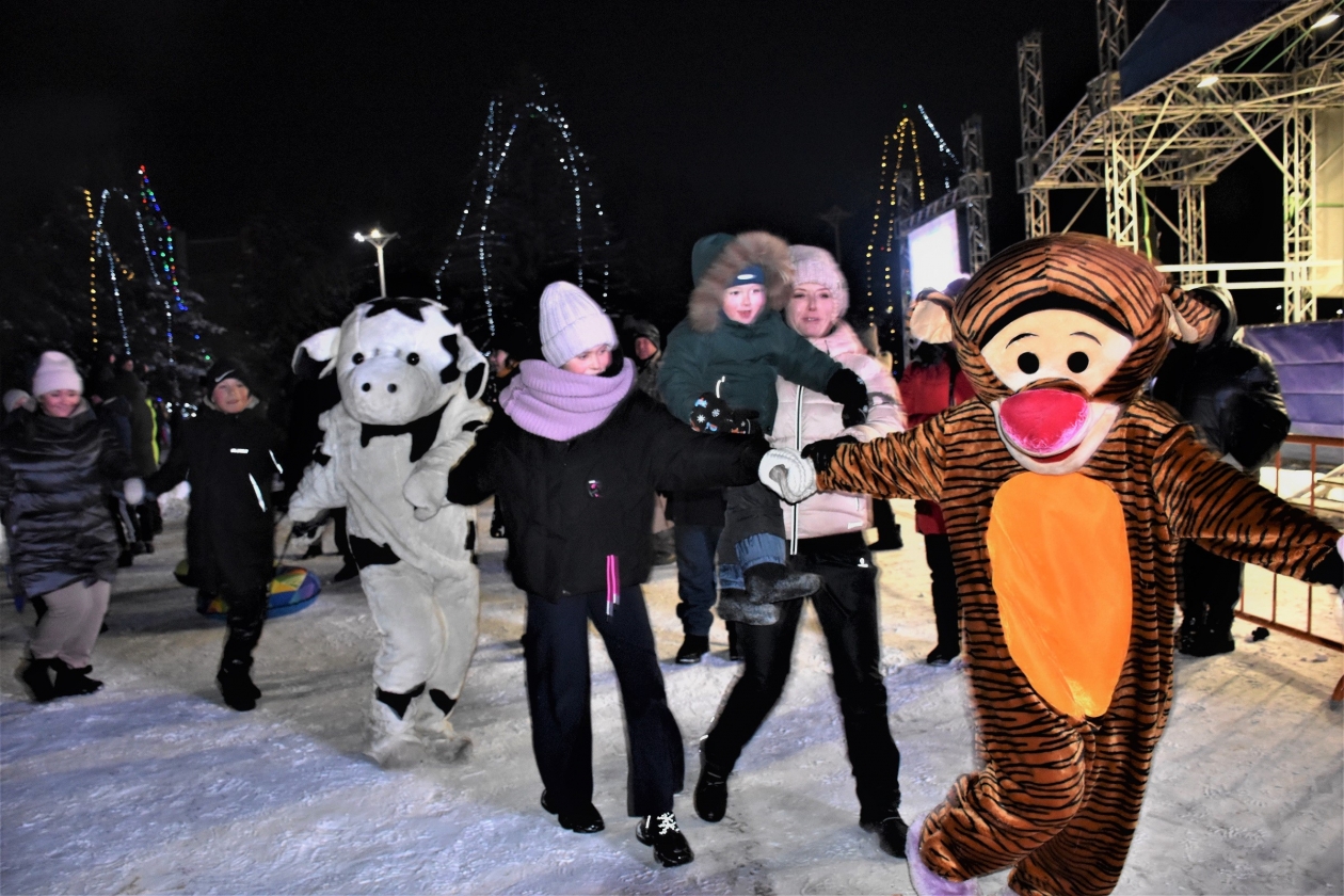 Местные артисты создали для гостей праздничную атмосферу. Часовая новогодняя программа не дала зрителям замерзнуть. Собравшиеся на площади отгадывали зимние загадки, пели песни, а под занавес закружились в хороводе.