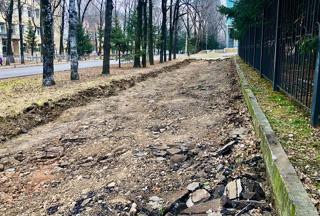 Подрядная организация по многим направлениям провела подготовительные работы: сняла старое покрытие, бордюрный камень, подготовило основание под асфальтирование.