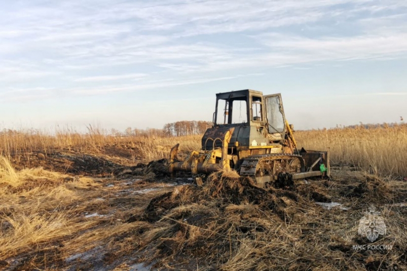 Бульдозер стал первой "жертвой" пала сухой травы в ЕАО