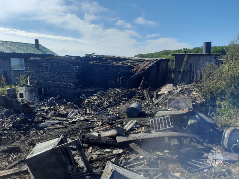 В результате пожара сарай и туалет выгорели полностью, а также частично повреждена крыша смежного сарая, принадлежащего соседям. Пострадавших нет.