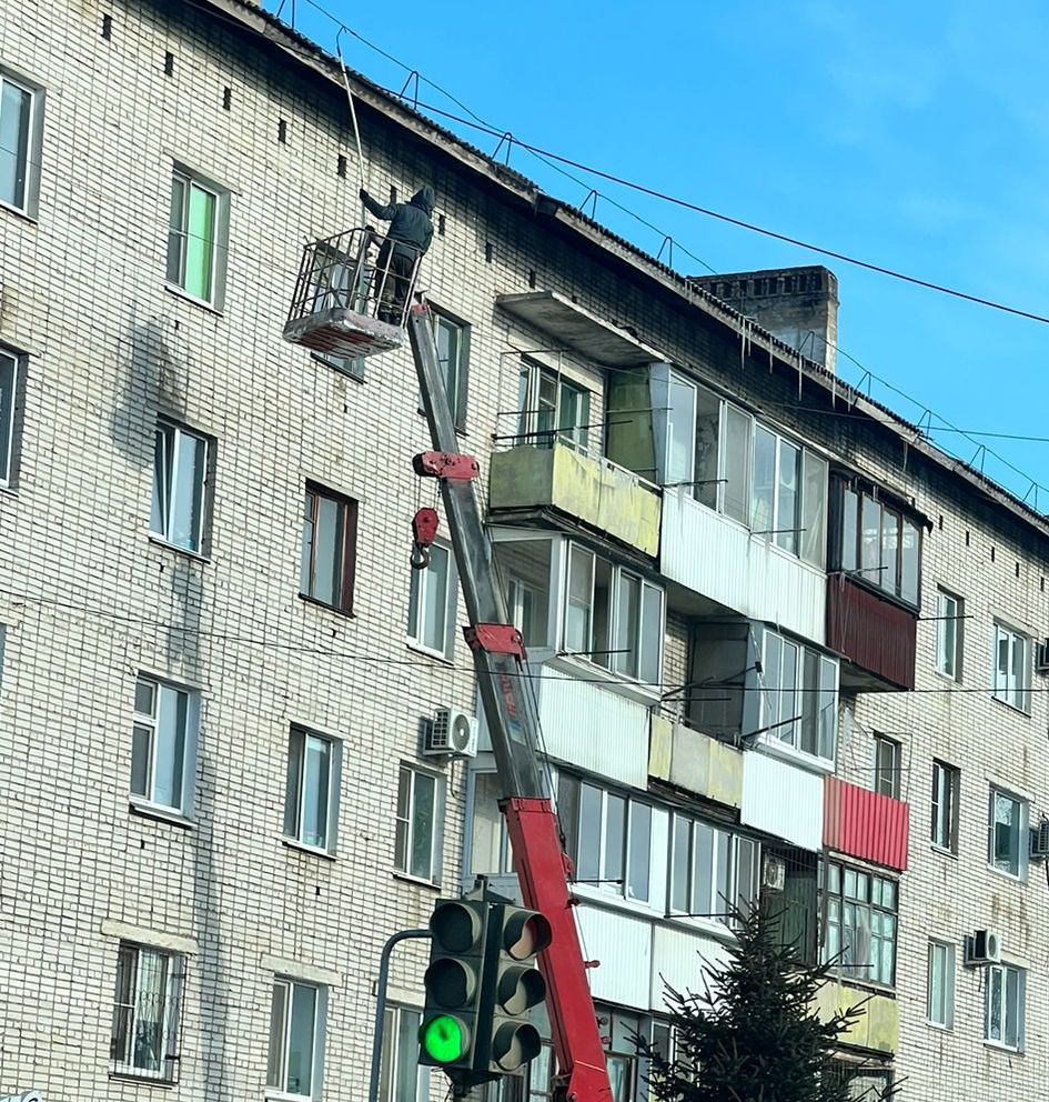 Управляющие компании Биробиджана приступили к расчистке крыш от сосулек
