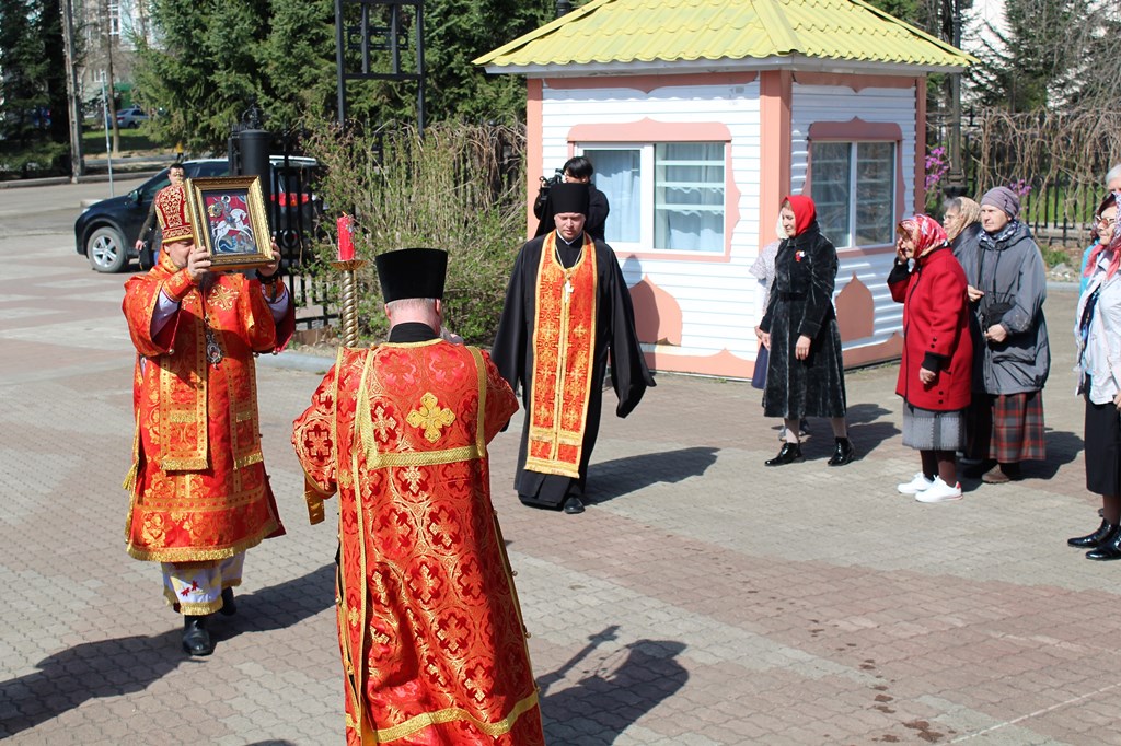 Святой образ принесён настоятелем Илиинского храма иеромонахом Иоанном (Зыковым) и встречен прихожанами и духовенством собора по окончании Божественной литургии и крестного хода. Архиепископ Ефрем совершил перед иконой молитву об укреплении воинов, находящихся на поле брани, о Победе над злом и его разного рода проявлениями.