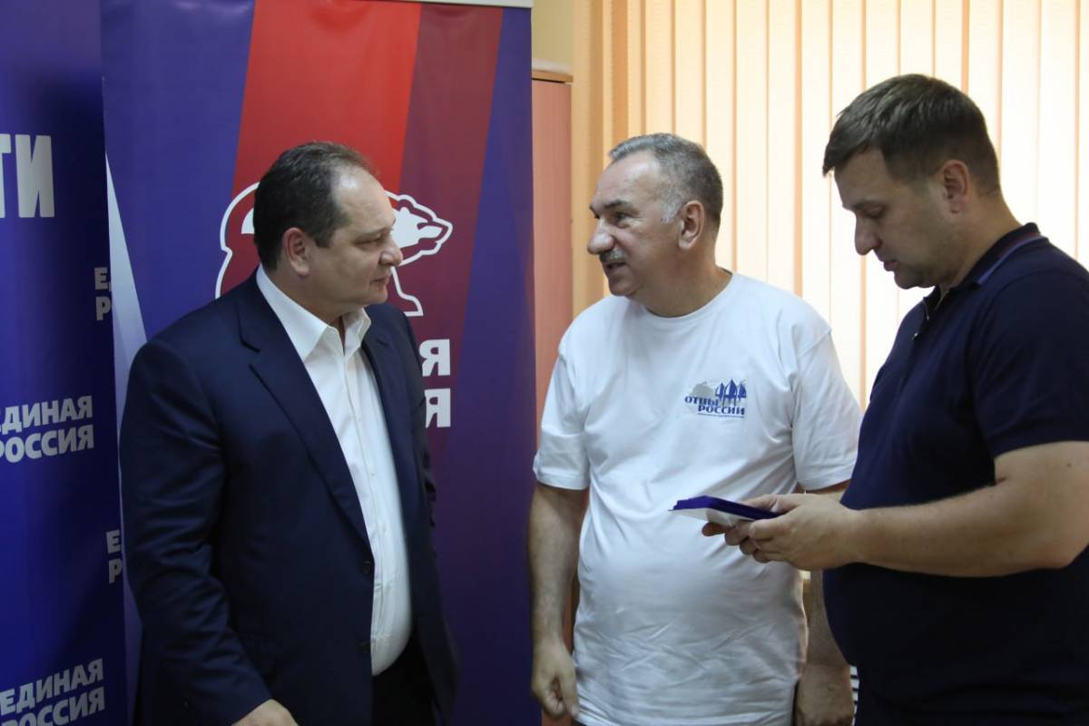 Председатель всероссийского общественного движения «Отцы России» в ЕАО Алинберг Ганапольский представил главе региона медаль «Отец солдата» в рамках личного приёма граждан в Региональной общественной приемной Председателя партии «Единая Россия».