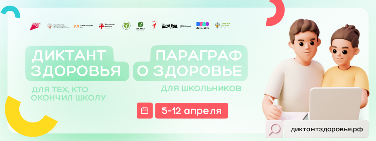 Принять участие во Всероссийском диктанте по общественному здоровью и диспансеризации на платформе диктантздоровья.рф может каждый желающий. Тест включает около 40 вопросов на ключевые темы, посвященные правилам здорового питания, основам ЗОЖ и гигиены, важности физической активности и прохождения диспансеризации. Для каждого вопроса предлагается несколько вариантов ответа – нужно выбрать верный. На сайте диктанта есть специальный раздел для школьников «Параграф о здоровье», где они смогут проверить свои знания. Задания направлены на повышение уровня информированности учащихся о важности ведения правильного образа жизни и укрепления здоровья. Все материалы для диктанта разработаны ВОД «Волонтеры-медики» при поддержке Роспотребнадзора и Минздрава России. По итогам диктанта участники получат электронные сертификаты и ссылки на полезные тематические материалы.